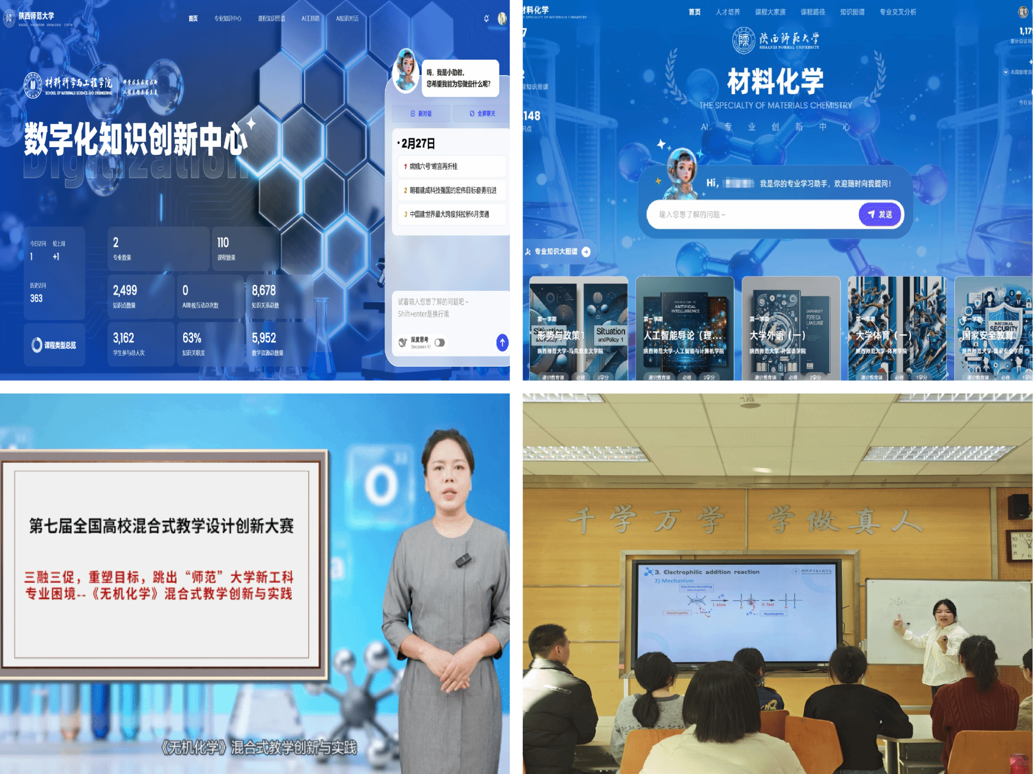 学院聚焦课程与教材建设,丰富教学资源储备。本学年出版《无机化学实验报告册》《新能源材料手册(第二卷)》等2本教材,发表8篇教学论文,完成2个专业知识图谱及17门“智慧+”课程,构建系统化数字化教学资源矩阵。同时,学院与中国科学技术大学、绵阳市科学城一中以及佛山四所高中等围绕科学教育在数智化建设、校际协同育人模式等方面开展深入交流与合作。深化教学改革实践,学院连续两年获评陕西师范大学本科教学管理先进单位,1项成果获校级教育教学成果特等奖,教师立项省部级教学改革项目4项,其中立项2025年度陕西省本科和高等继续教育教学改革研究项目重点攻关项目1项和重点项目1项,1人获陕西师范大学“教学质量优秀奖”,1人获全国混合式教学设计大赛三等奖,2人获陕西师范大学第八届教师教学创新大赛三等奖,教学创新能力显著提升。