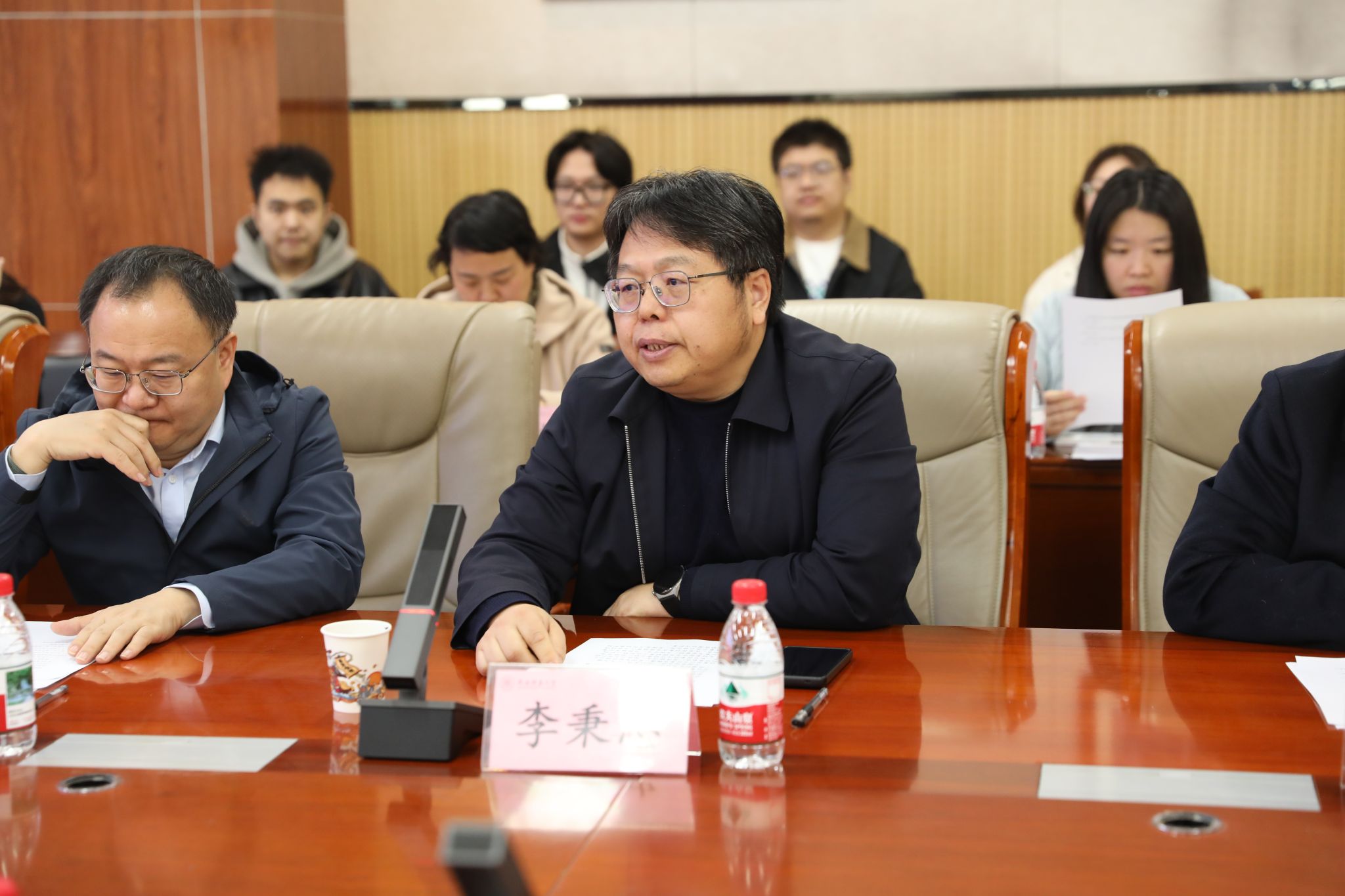 座谈会上,副校长李秉忠代表学校对中央档案馆调研组的到来表示热烈欢迎,并介绍了学校在档案与文物保护领域的学科优势与突出贡献。李玉虎教授系统汇报了我校在环保防灾耐久档案盒与封存箱、感光影像档案濒危病害治理、濒危报纸期刊修复保护及纸质档案原貌恢复与保护等方面的最新研究进展与应用成效。